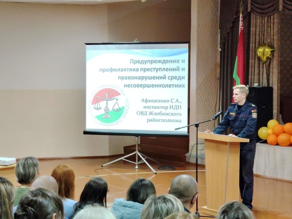 ✅ По вопросу профилактики преступлений и правонарушений среди несовершеннолетних выступил инспектор ИДН ОВД Жлобинского райисполкома Афанасенко С. А.