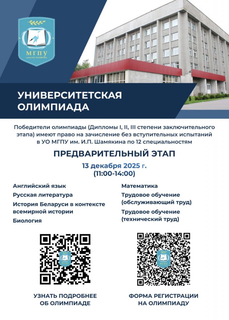 УО МГПУ им. И.П. Шамякина проводит 13 декабря 2025 года предварительный этап университетской олимпиады 4 Дек,2025 adminОставить комментарий