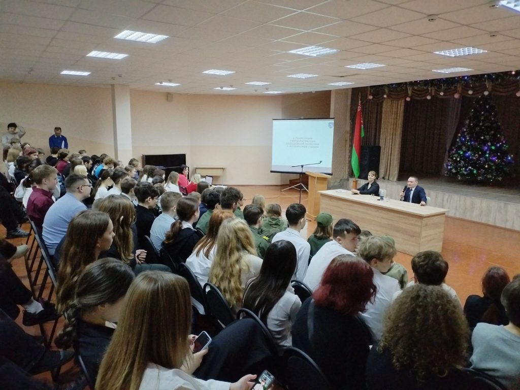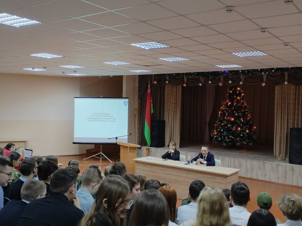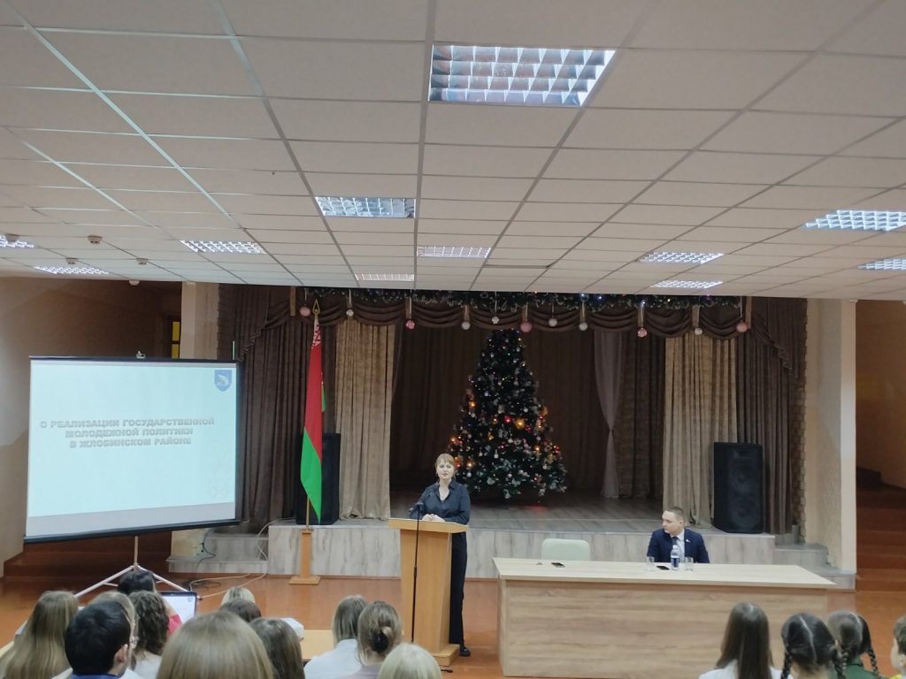 20 декабря в средней школе №12 г. Жлобина для учащихся 8-9 классов состоялась диалоговая площадка «С молодежью на равных – В БУДУЩЕЕ СМОТРИМ ВМЕСТЕ». Спикерами выступили главный специалист отдела идеологической работы и по делам молодежи Широкая И.И. и специалист по молодежной политике Гомельского облисполкома Антонов А.Л. В ходе встречи Ирина Ивановна познакомила ребят с молодежными инициативами, реализующимися на территории Жлобинского района, с мероприятиями, в которых может участвовать наша молодежь. Важность и престиж быть патриотом своей страны обсудил с ребятами Александр Леонидович. Так же во время беседы школьники высказали свои пожелания по организации свободного времяпрепровождения. Ни один вопрос не остался без внимания экспертов!