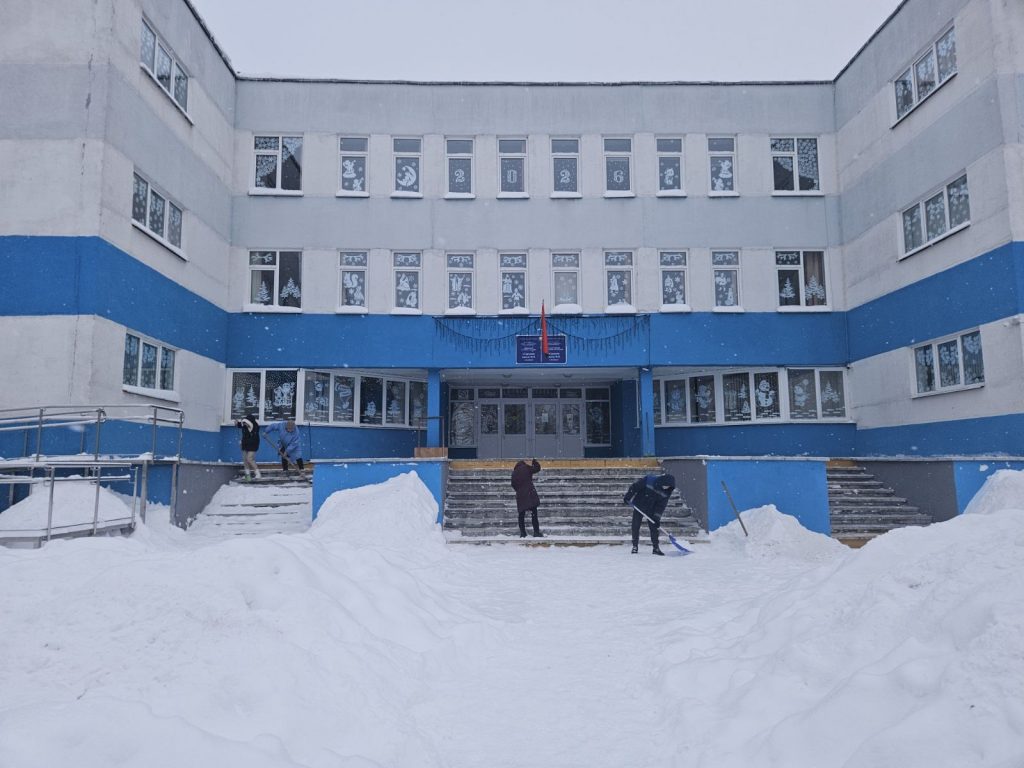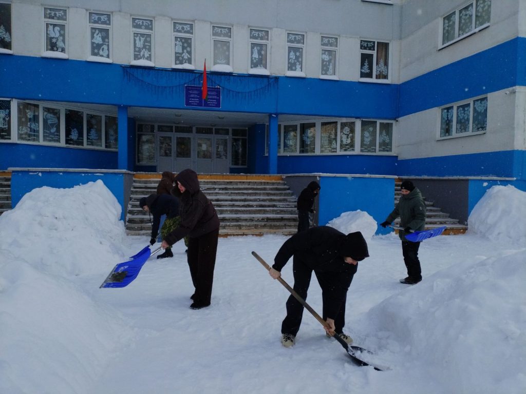 Трудовой коллектив, вооружившись необходимым инвентарем, проводил очистку от снега тротуарных дорожек, запасных выходов, пандуса , дворовой территории. Не остались в стороне от общего дела и молодые специалисты, а так же учащиеся школы, в том числе с которыми проводится индивидуальная профилактическая работа. Вместе мы можем справиться с любой стихией!