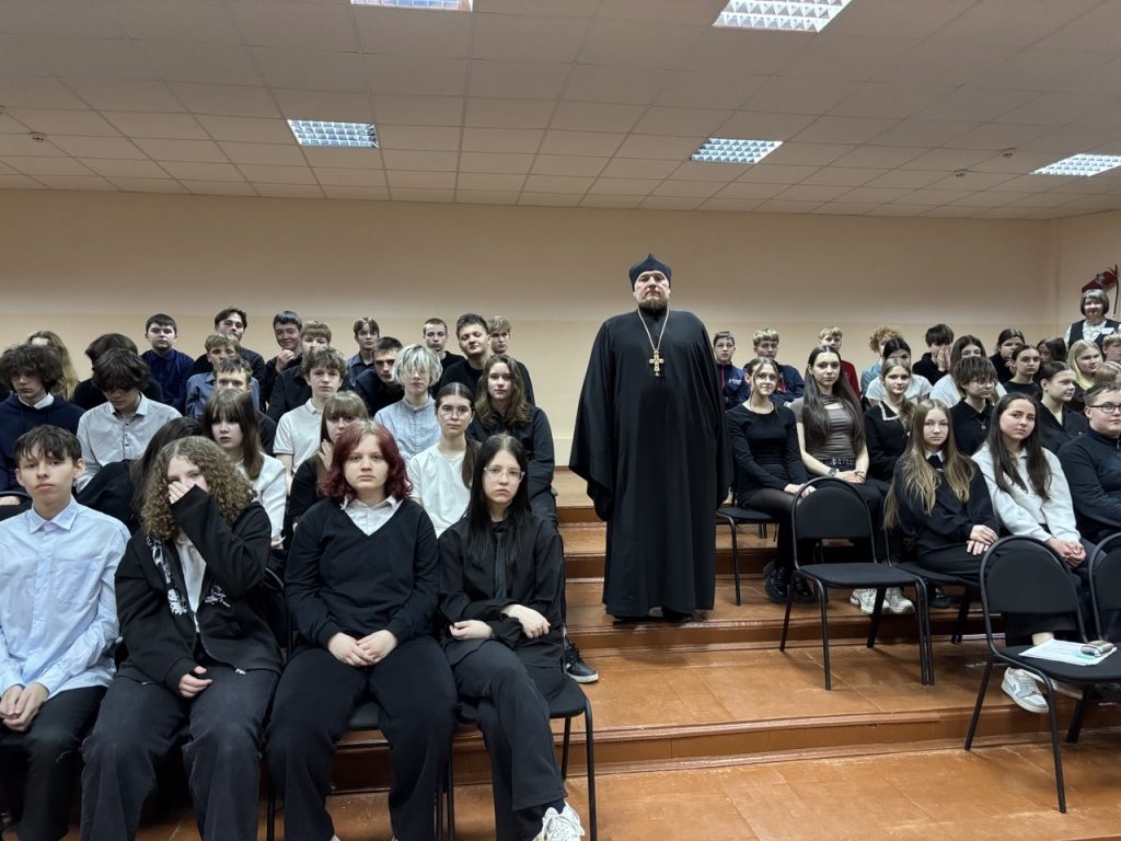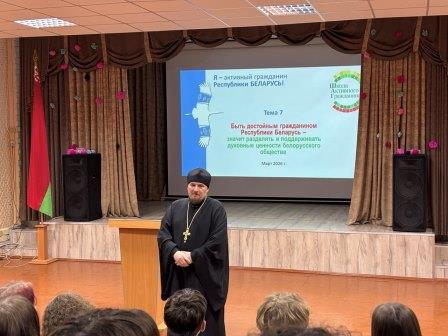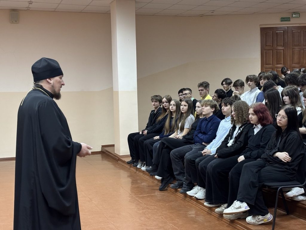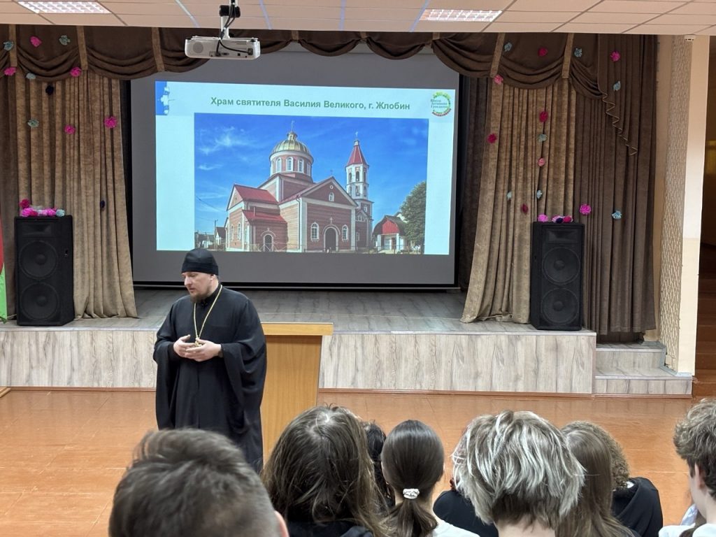 Учащиеся встретились с представителем Белорусской Православной Церкви, настоятелем прихода Святителя Василия Великого города Жлобина иереем Вячеславом Рябицей.